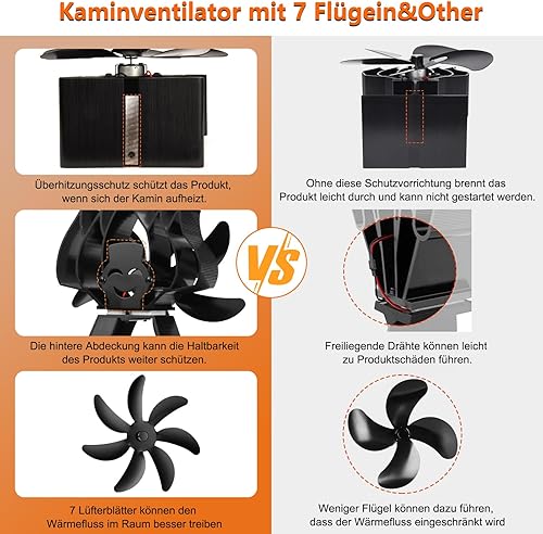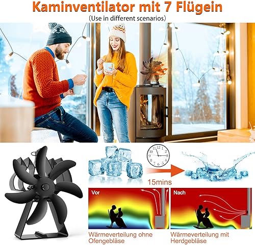 Fwiull Kaminventilator ohne Strom, 7 Blättern Ofenventilator Ventilator Für Kaminofen ohne Wärmebetriebener Stove Fan Leiser mit Ofenventilator Kaminventilator für Holzöfen/Holzbrenner oder Kamin