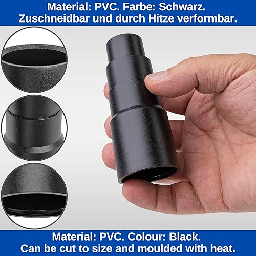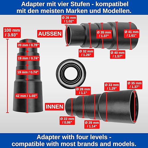 Universal Staubsauger Adapter, 1 Stück, Schwarz, kompatibel mit Bosch, Makita, Kärcher, uvm., 4-stufig mit Ø 41-26 mm Außen, Ø 35-22 mm Innen, Reduzierstück Schlauchadapter, Staubsaugeradapter
