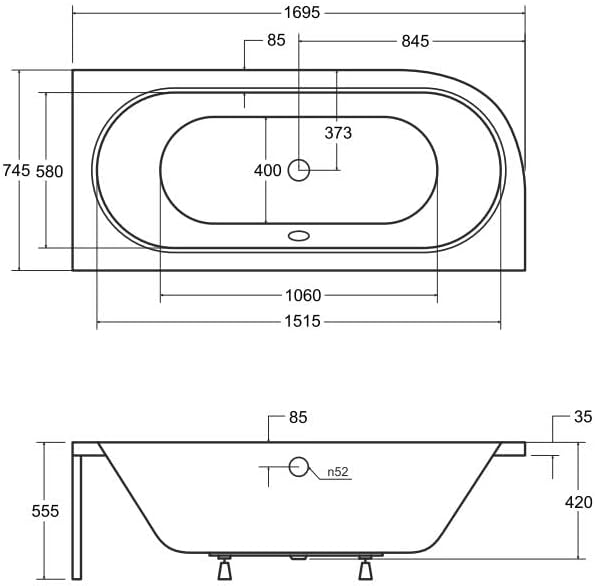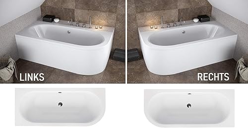 BADLAND Badewanne Original Weiß Acryl Wanne Eckbadewanne AVITA 170x75 Rechts KOMPLETTSET SET mit Weiß Acrylschürze + Füßen und Exklusive Chrom Automatik Ablaufgarnitur Made in EU 4in1
