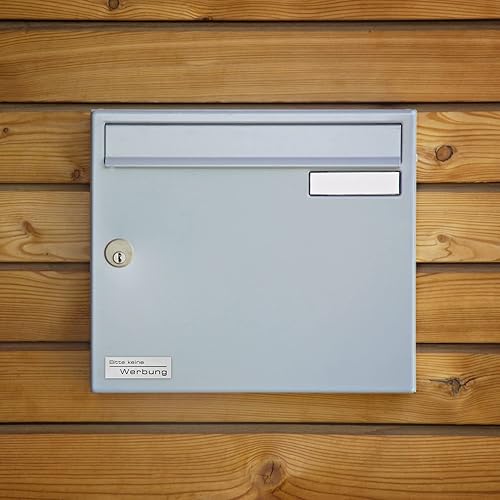 Gravur 24 Briefkastenschild Bitte keine Werbung zweizeilig graviert 7,5x2,5cm selbstklebend Grau