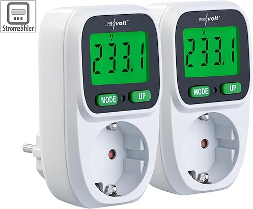 revolt Energie Messgerät: 2er-Set Digitaler Energiekostenmesser, LCD-Display, bis 3.680 W (Digitales Energiekostenmessgerät, Energiekosten Messgeräte Steckdose, Energiekostenrechner)