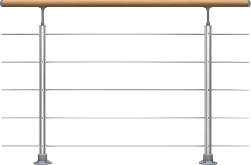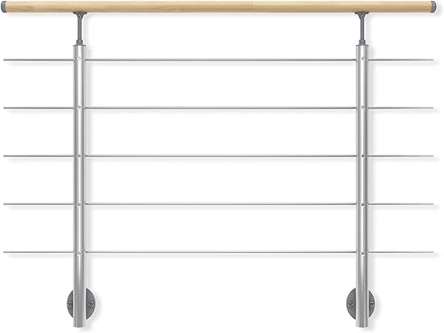 DOLLE Aluminium Geländer-Set Handlauf aus Buche Füllstäbe aus Edelstahl aufgesetzte Montage 150 cm