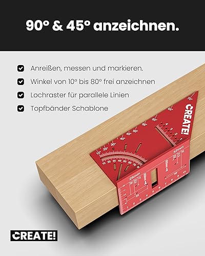 CREATE! 3D-Gehrungswinkel aus Aluminium mit 90° und 45° Funktion | Anreißwerkzeug
