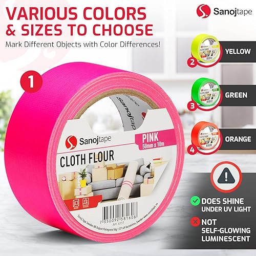 Sanojtape Neon-Fluor-Gewebeband 50mm x 10m Fluoreszierendes Rosa Dekoband