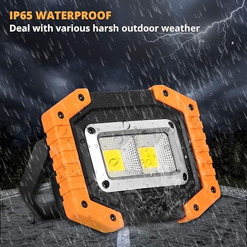 KAMEUN LED Baustrahler Akku 2 Stück, Wiederaufladbare Strahler mit Akku (18650ma*2) 30W 2000LM, LED Arbeitsleuchte USB Tragbar für Garage Camping Angeln Notfall Baustellen,3 Lichtmodi (GELB)