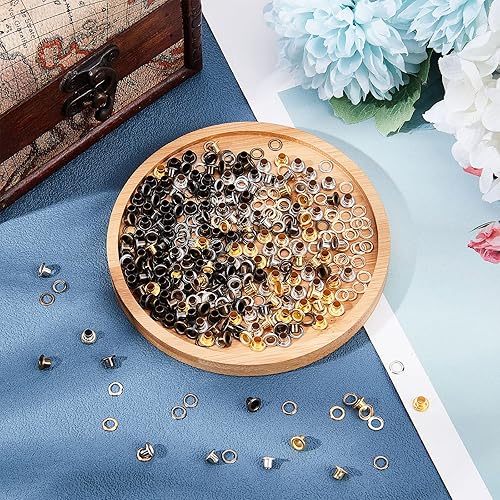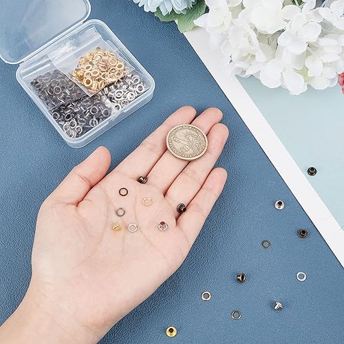 GORGECRAFT 200 Sets 4 Farben Ösen Und Ösen 3 mm Loch Selbsttragende Öse Mini Crop A Dile Ösen Mit Unterlegscheiben Für Papierhandwerk Perlenkerne Kleidung Leder Leinwand