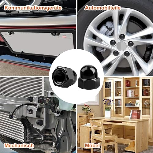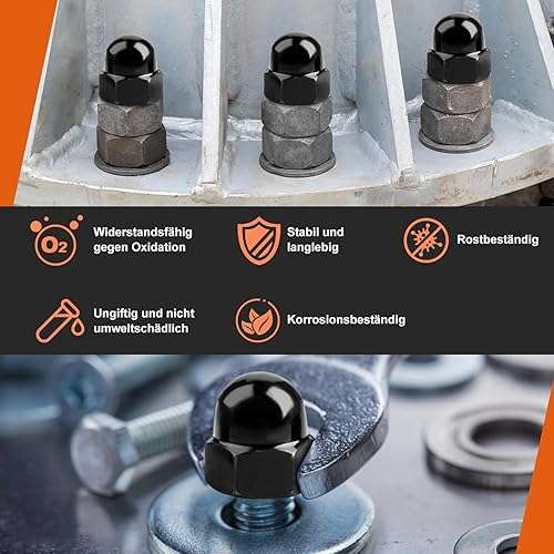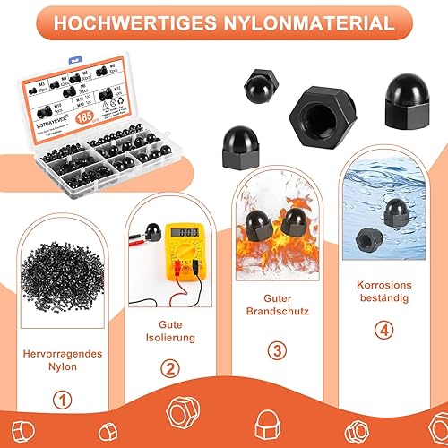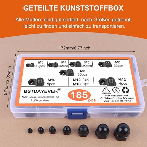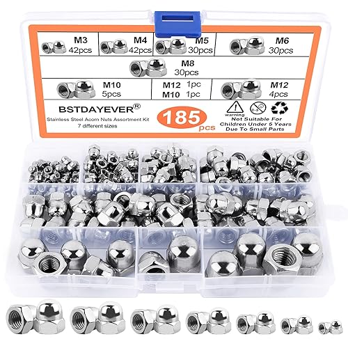 Hutmuttern Hohe Form Set 185Stk M3/M4/M5/M6/M8/M10/M12 Sechskant Hutmuttern Verzinkt Hutmutter Korrosionsbeständigkeit Kuppelmuttern Hutmuttern für Möbel Fahrzeugbefestigungen(Silber/Edelstahl)