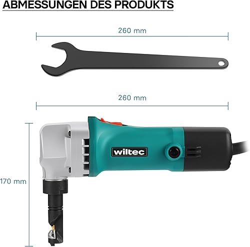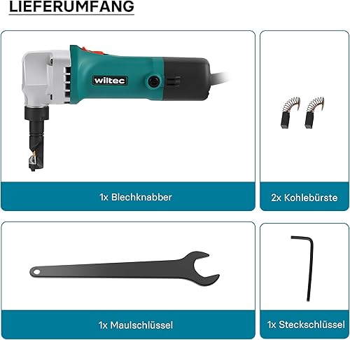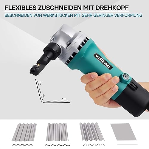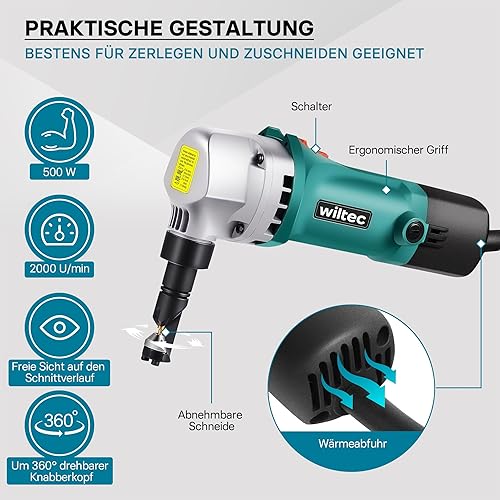 Wiltec Blechknabber 500 W mit Schnitttiefe bis 2,5 mm, Blechnibbler mit um 360° drehbarem Knabberkopf, Nibbler Blechschere