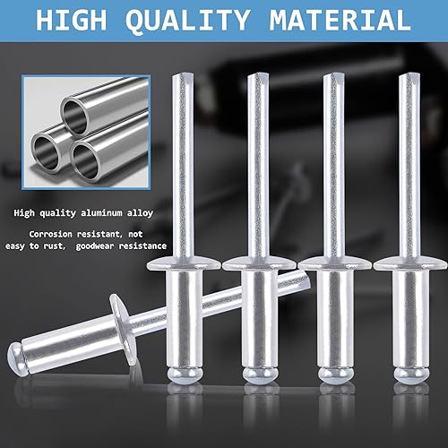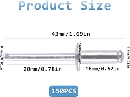 150 Stück Blindnieten, 4,8 x 16 mm Popnieten, Nieten Aluminium, Blindniet mit Großem Flansch, Stahldorn für Metall Kunststoff Holz
