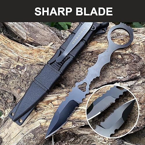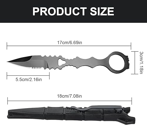 Thoquene EDC Messer mit Kydex Scheide, 17 CM Feststehende Tactical Faustmesser, Verstecktes Stiefelmesser