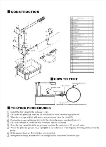 KATSU Tools 318927 Wasser Rohr Montage Heizzystem Leck Druck Tester Pumpe