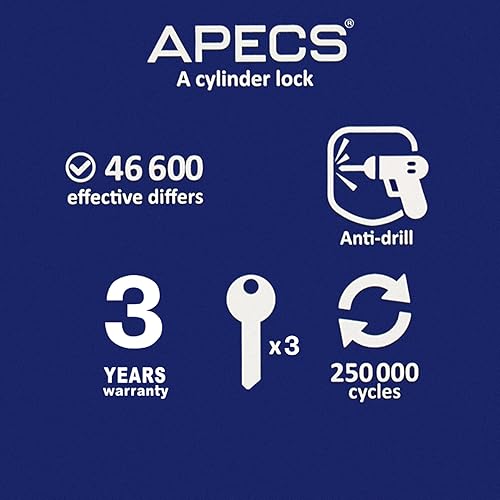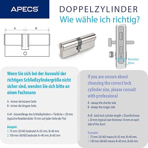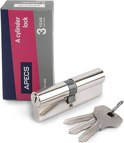 APECS Zylinderschloss Profilzylinder 50/60 mm für Türschloss Haustür mit 3 Schlüsseln Modell EC-110(50/60) in Silber
