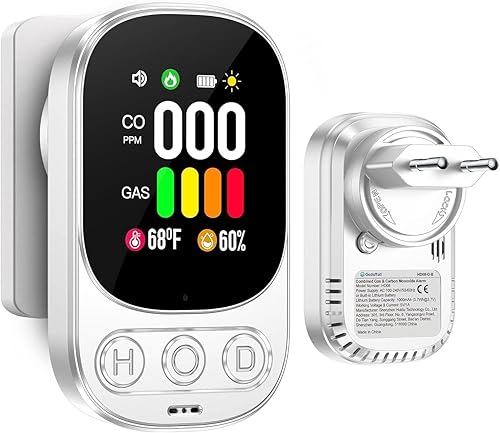 Gedsffati Gas- und CO-Melder mit Stecker für Haus, Kohlenmonoxidmelder CO-Warnmelder für Zuhause, Gasmelder Gaswarnmelder für Erdgas Stadtgas LPG Methan Propan Butan, Weiß, HD08-G