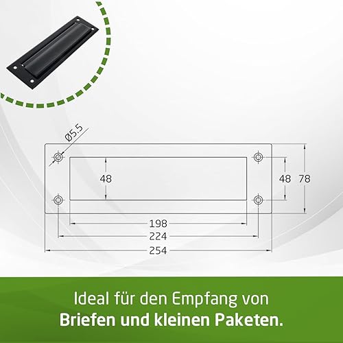 Amig - Briefschlitz für Briefkasten | Für Innen- und Außenwände oder -Türen | Briefeinwurf aus Stahl | Größe 254x73 cm | Schlitzmaße: 198x48 mm| Schwarz Farbe