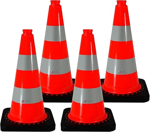 UvV-Reflex Leitkegel mit reflektierenden Streifen (Folie Typ 1), Hochwertiger Pylon aus PVC 50 cm für Ihre Sicherheit