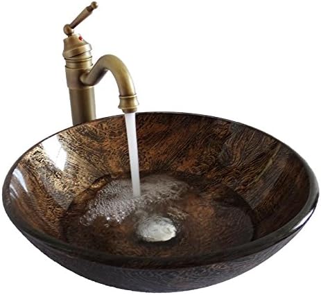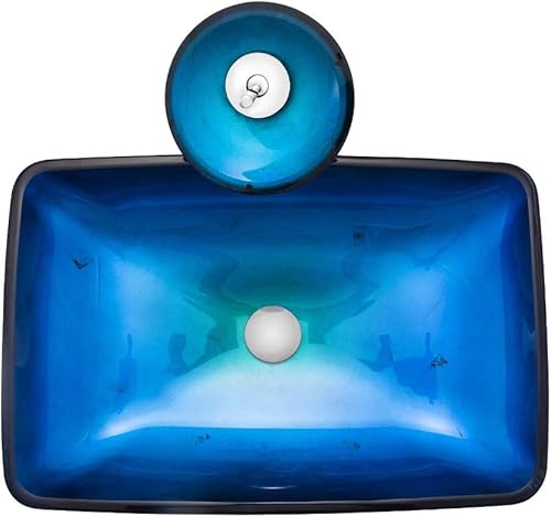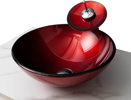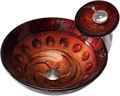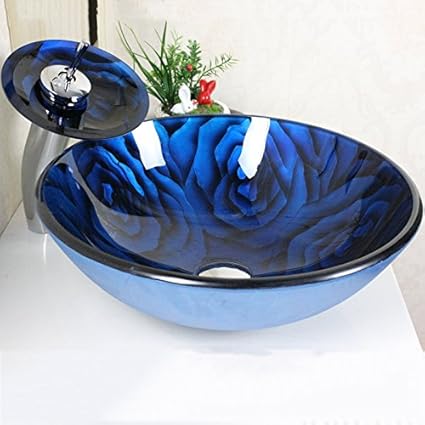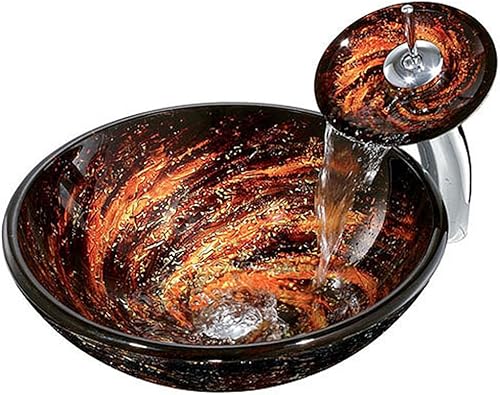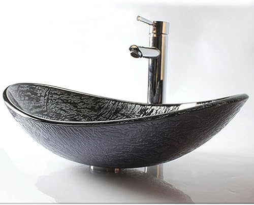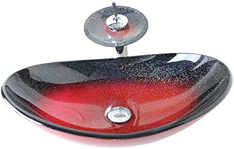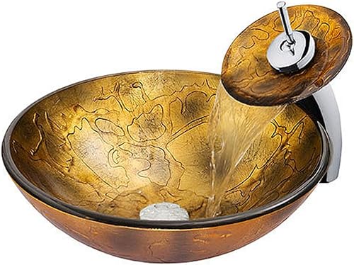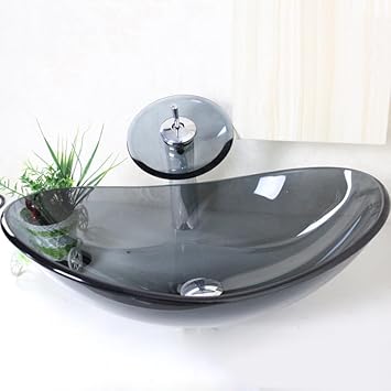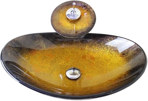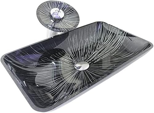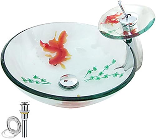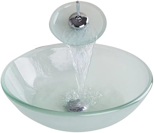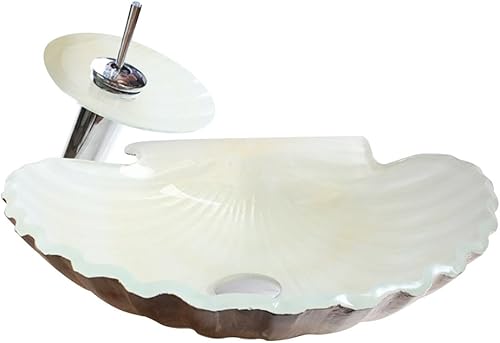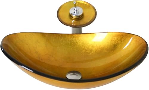 Homelava Modern Gehärtetes Glas Waschbecken Blatt Design Glas Aufsatz Waschschale mit Wasserfall Wasserhahn (Grün)