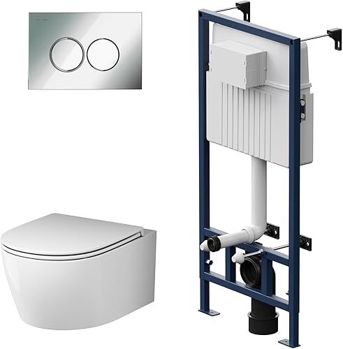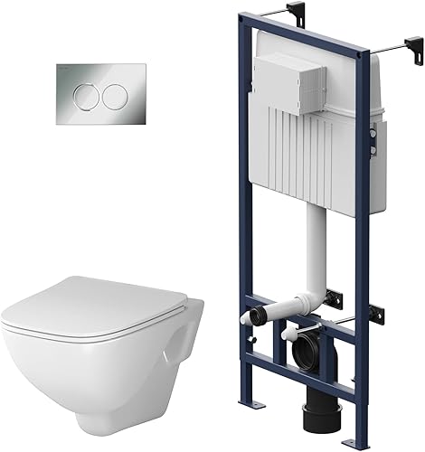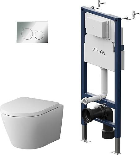 Komplettes Set - Vorwandelement inkl. Betätigungsplatte II90151 + Hänge-WC Flash CNA1700SC FlashClean + WC-Sitz mit Soft-Close-Absenkautomatik, AM.PM Prime Fit IIS90151.NA1700