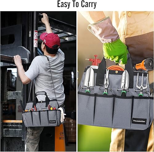 Housolution Garten Werkzeugtasche, 35 x 14 x 28 cm Tragbar Gartentasche Wasserdicht Aufbewahrungstasche mit Mehreren Taschen und verstellbarem Schultergurt Werkzeugbeutel für Haus Garage, Dunkel Grün