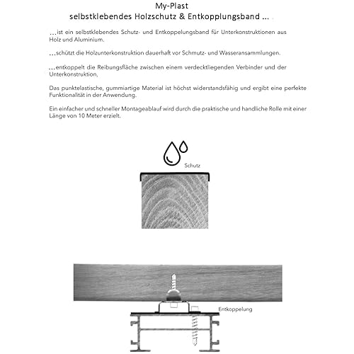 10.000 mm x 75 mm x 0,6 mm Butyl Terrassen Abdeckband Rolle Holz & Unterkonstruktionen - einseitig selbstklebendes Holzschutz Band (1 Rolle (Gesamt 10 Meter))