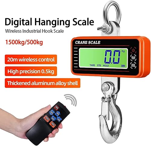 Hängende Waage mit Fernbedienung 1500KG 3000lbs, Digitale Hängewaage Elektronische Kranwaage Zugwaage mit präzisem Sensor & LCD-Anzeige, Wildwaage Mini Waage mit Haken für Bauernhof, Fabrik, Jagd