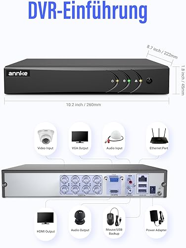 ANNKE 8 Kanal 3K Lite DVR Recorder H.265+ Überwachungssystem DVR Recorder für Analog/AHD/TVI/IP CCTV Kamera, Intelligente Person- und Fahrzeugerkennung, E-Mail-Benachrichtigung, 2TB Festplatte