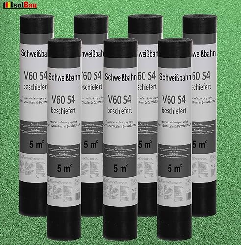 Isolbau Schweißbahn V60 S4 beschiefert - Bitumenbahn mit Glasvlies-Einlage zur Dachabdichtung - Grün, 7 x 5 m² Rolle