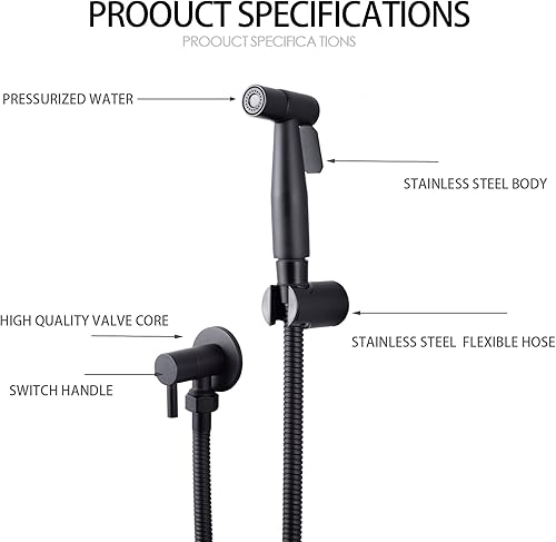 LOSCHEN Bidet Toilettensprüher, Hand Bidet Sprayer, Bidet Handbrause, Edelstahl Duschkopf Bidet Armaturen für Haustierbad/Körperpflege/WC (Schwarz)