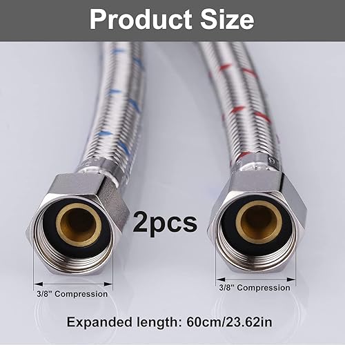 2 Stück Anschlussschlauch Armatur, G3/8 x M10 Geflochtener Edelstahl Anschlussschlauch Panzerschlauch 60cm Wasserhahn Schlauch Verlängerung für Schlauch Wasserhahn Mischbatterie