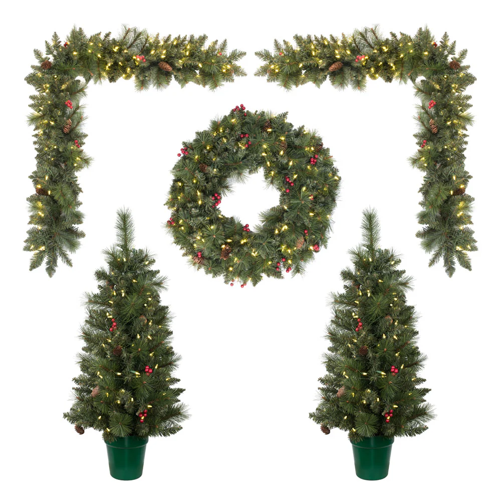 Vickerman 5 Piece Front Door Artificial Christmas Set Warm White LED Lights Set of 5