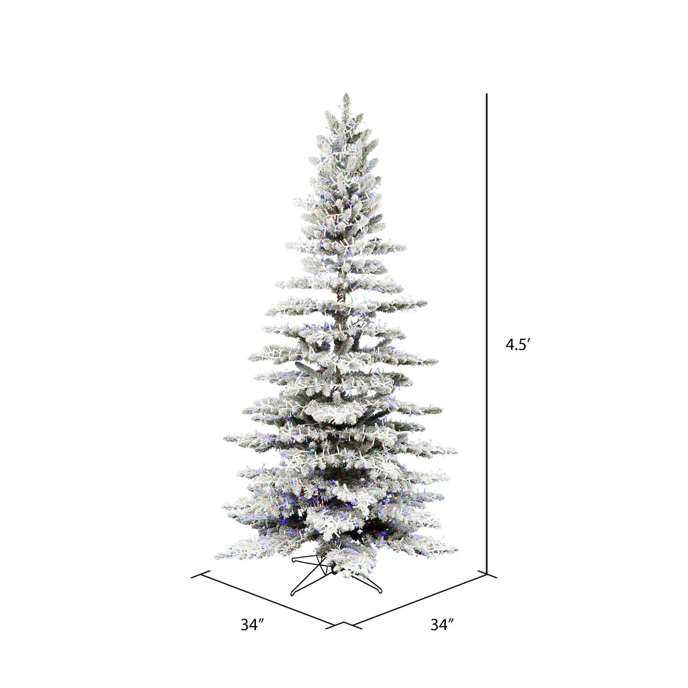Vickerman 4.5' x 34" Flocked Stratton Pine Artificial Christmas Tree Low Voltage LED Multi-color Wide Angle 3mm Lights