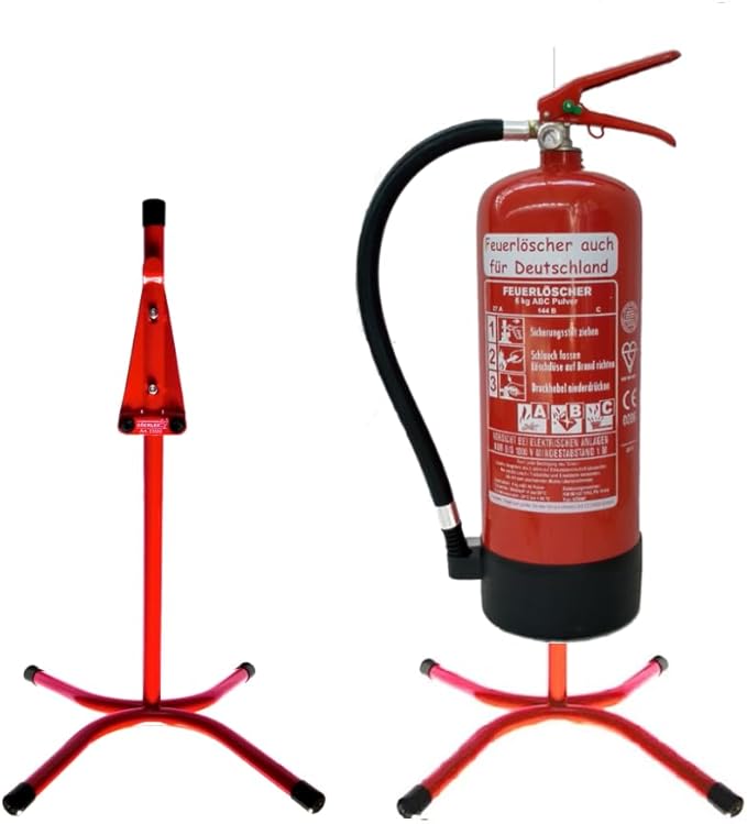 Brandengel® Universalständer gerade Rohrstahl in rot mit X - Fuß und montierten Halter freistehender Ständer geeignet für 1 Feuerlöscher der Größe 6/9/12 kg/L