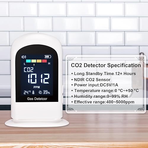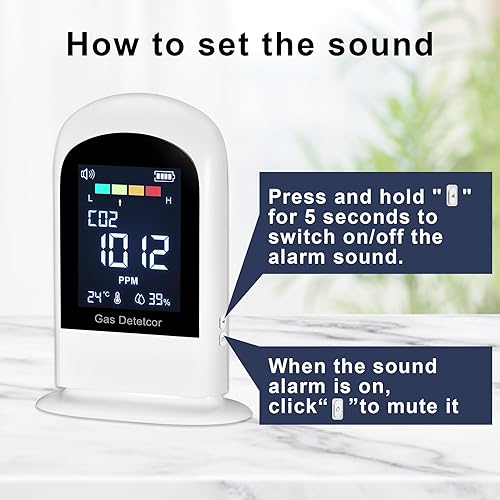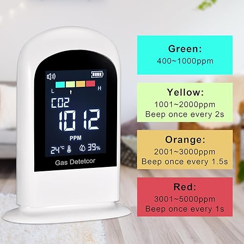 CO2 Messgerät mit akustischem Alarm, iMeistek Upgrade CO2 Melder mit NDIR Sensor 400-5000PPM, Kohlendioxid Melder-Messgerät, Temperatur, Luftfeuchtigkeit, wiederaufladbare Batterie betrieben