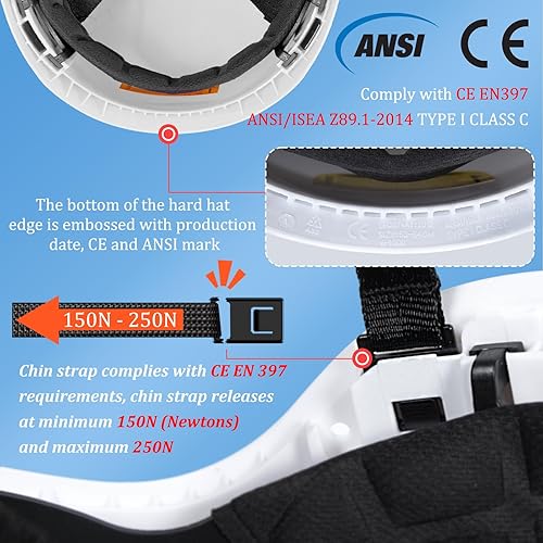ABS-Sicherheitshelm, Arbeitshelm Schutzhelm, mit Belüftungslöchern und verstellbarem Kopfband, EN 397 zugelassener Arbeitshelm, Leichter Arbeitshelm für Sicherheit und Schutz