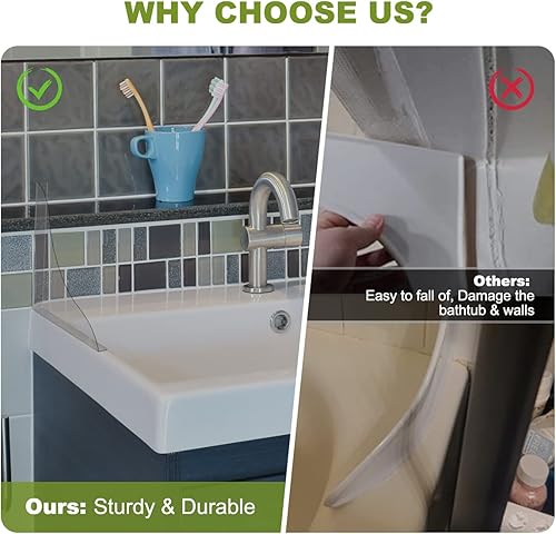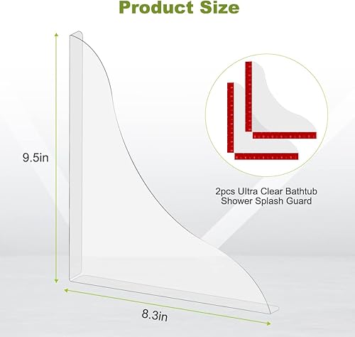2 Stück Badewannen-Dusch-Spritzschutz, Spritzschutz für Badezimmer, Badewanne, Ecke mit 3M Super-Viskose, transparente Badewannen-Spritzschutz, 2 Stück