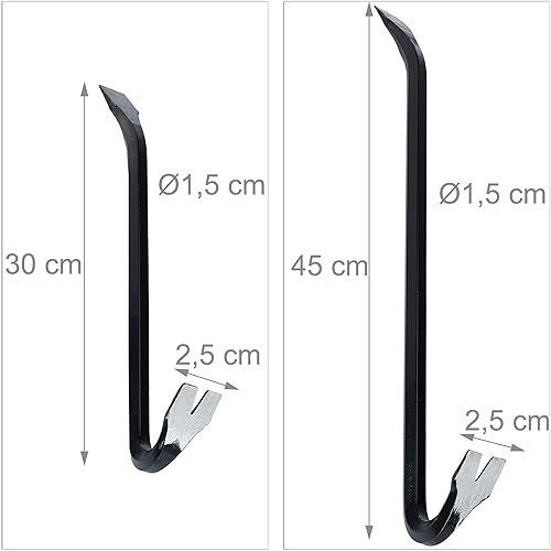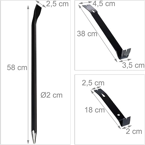 Relaxdays Brecheisen Set 5-teilig, Brechstange sechskant, Nageleisen groß, Kuhfuß lang, Montierhebel, aus Stahl, schwarz, 4 x 58 x 2.5 cm