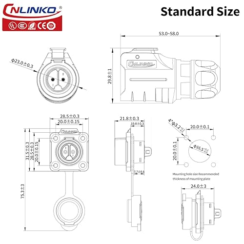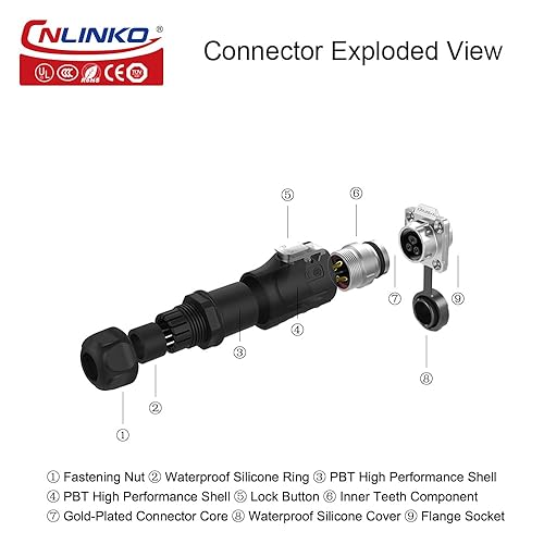 CNLINKO LP-16 Industrieller Wasserdichter Steckverbinder IP68 Rundsteckverbinder Schnellverschluss Luftfahrtstecker Anti-Interferenz-Shell Aviation-Anschluss M16 2-9 Polig Flanschdose (3 Polig)