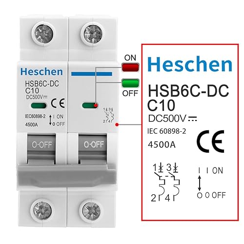 Heschen DC Miniatur-Leistungsschutzschalter, HSB6C-DC, 2 Polig, DC500V 10A, Photovoltaik Leistungsschutzschalter, für Solar PV Anlage Solar Panels Grid System, 35mm DIN-Schienenmontage