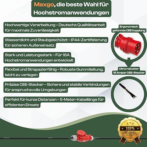 netbote24® maxgo CEE Anschlussleitung Maschinen Anschlusskabel Starkstromkabel Verlängerungskabel Gummikabel H07RN-F 5X1,5mm² 5-polig 400V 16A IP44 Außenbereich 15m