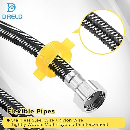 DRELD 2 Stück Flex Schlauch Armatur, Edelstahl Anschlussschlauch G1/2' x G1/2', Panzerschlauch Wasserhahn, Dusche Umflechtung Flexschlauch für Wasserhahn Mischbatterie (20CM)