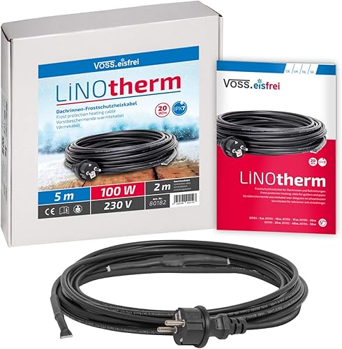 VOSS.eisfrei Heizkabel Linotherm 5 Meter lang, besonders hohe Heizleistung, Frostschutz für Dachrinnen und Wasserleitungen Rohrbegleitheizung Frostschutzkabel Heizleitung Dachrinnenheizung