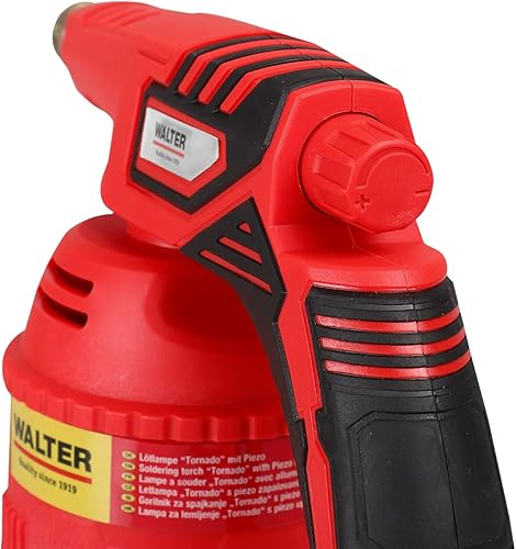 WALTER Lötlampe mit Piezo – Leistungsstarker Lötbrenner mit Piezozündung, Regelrad – Ideal für Weichlöten, Auftauen, Reparaturarbeiten – Heimwerker-Lötset mit Softgrip-Griff und Robustem Gehäuse