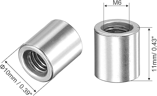 sourcing map 20Stk. Runde Schweißmuttern M6 x 10mm x 11mm Anschweiß Spund Innenmutter Gewinde 201 Edelstahl Einfügen schweißbar