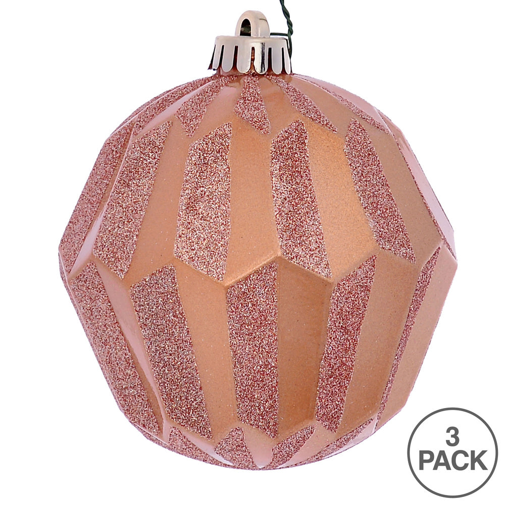 Vickerman 5" Café Latte Glitter Faceted Ball Ornament 3 per Bag