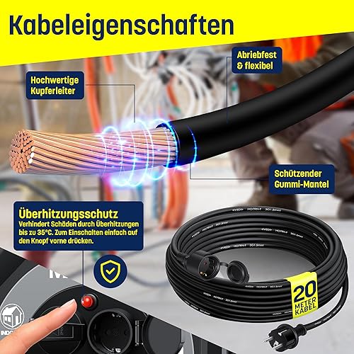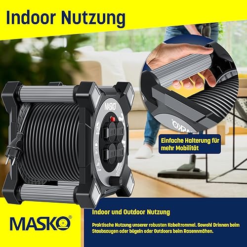 MASKO® Kabeltrommel 40m | Verlängerungskabel mit Schutzkontaktsteckdosen & Wickelgriff | Outdoor Kabelaufroller Thermoschutz | Gerätetrommel IP44 1000W ~ 3000W | inkl. Tragegriff und Montagehandschuhe