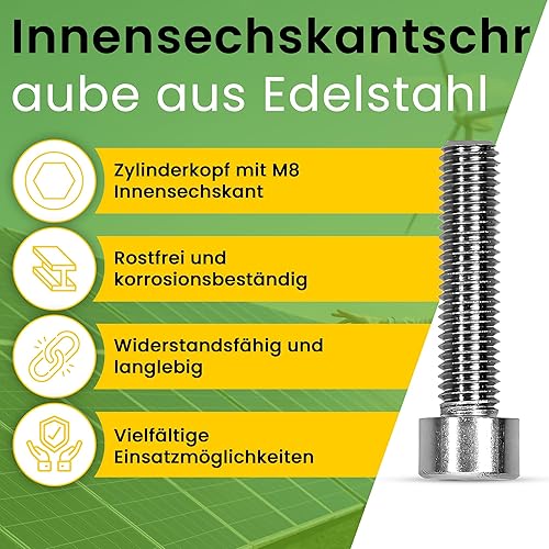 Offgridtec Innensechskantschraube M8 mit Zylinderkopf A2 Edelstahl DIN 912 20mm 50 Stück