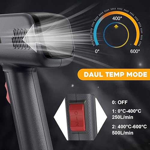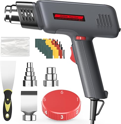 Heißluftpistole Kit, 2000W Heissluftgebläse 400℃/600℃ mit 6 Zubehör, 2 Luftstromeinstellung, Keramik-Heizkern, Elektrische Heißluftfön Schnelle Erwärmung zum Entlacken und Schrumpfen, heat gun Schwarz