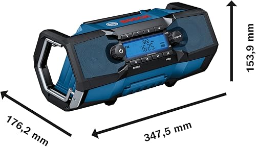 Bosch Professional 18V System Akku Baustellenradio GPB 18V-2 SC (Empfang über DAB+, Bluetooth, FM und AUX, inkl. 1x Netzteil, 1x AUX-Kabel, 1x 3V CR2032 Lithium-Knopfzellen-Batterie)