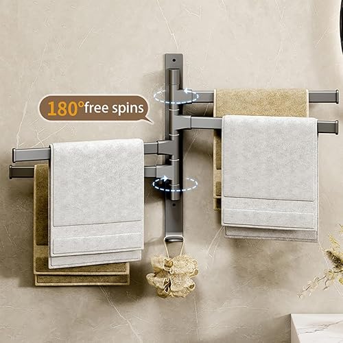 Handtuchhalter Wand ohne Bohren for Bad: 180°Drehung Badetuchhalter 3 Armig - Selbstklebend Handtuchstange for Badezimmer und Küche, Weiß