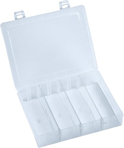 hünersdorff Sortimentskasten PP-Eco Mini mit 5 Fächern | stabile Sortierbox für Schrauben und andere Kleinteile | feste Facheinteilung | 14 x 18 x 4 cm, transparent