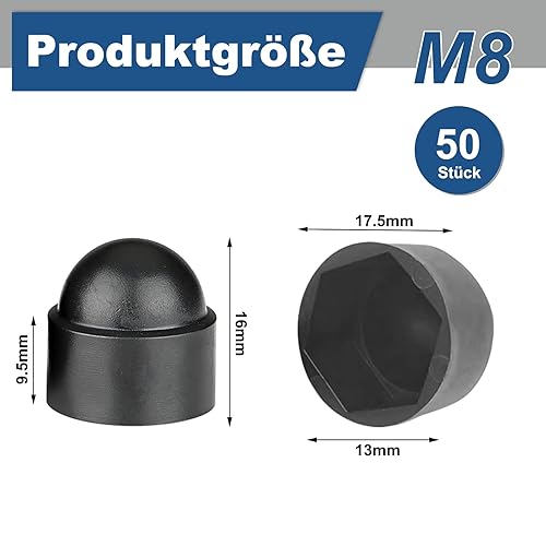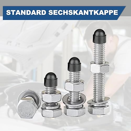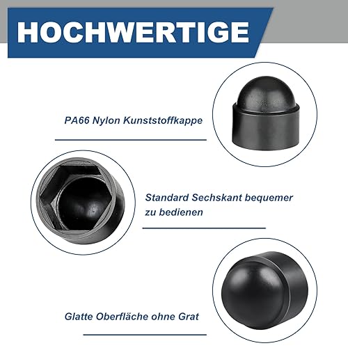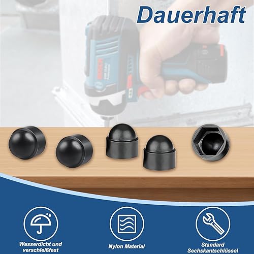 VEGCOO 50 Stück Hutmuttern M4,Kunststoff Schutzkappen Für Schrauben M4 Schwarzer Langlebiger Standard Sechskantmutter Kappe Kunststoffkappen Schraubenkappen Für Gewindestange